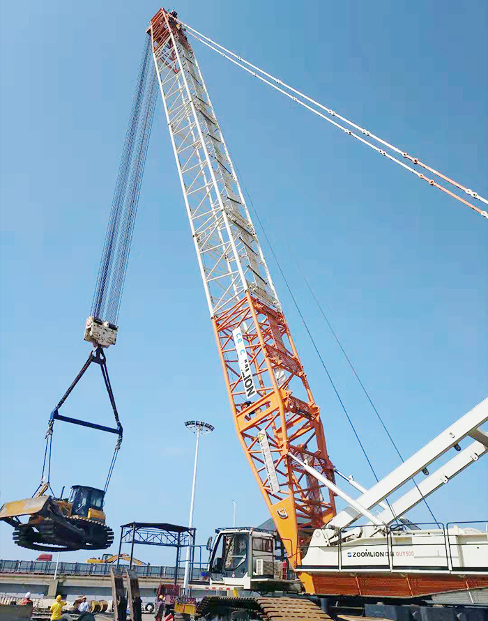 江蘇鑫鵬電力工程有限公司擁有多臺徐工履帶起重機,XGC28000、XGC16000、XGC12000、XGC11000、XGC型500t、ZCC9800W  ZCC8800W    QUY800  QUY650   QUY500、SCC8000A  SCC1100A  SCC500D等,起重量最大達到2000噸,整機采用有限元分析設計,起重臂采用管桁式結構,液壓采用開閉式相結合、電比例先導變量泵控系統,系統穩定,速度精調特性好。所有動作全部采用電液比例控制技術,通過PLC邏輯控制,有效地保證主機所有功能的實現。設備適于風電、海工船舶、港口碼頭、石化、橋梁等領域超大、超重構件的裝卸作業。