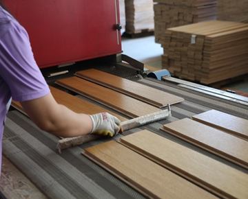 2.領(lǐng)華地板采用3000噸位熱壓機(jī)是地板各層面更緊密的結(jié)合,內(nèi)部結(jié)構(gòu)更加穩(wěn)定;